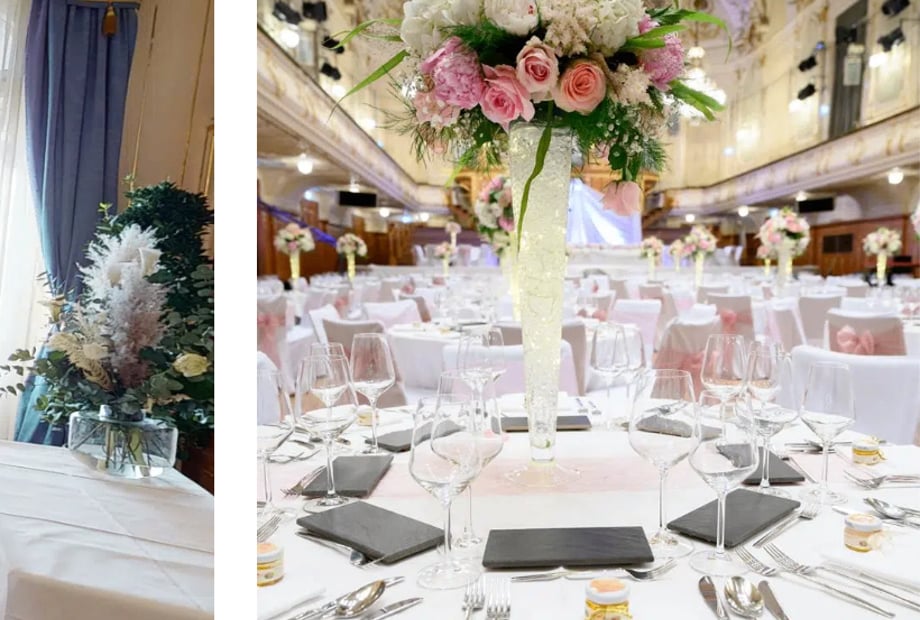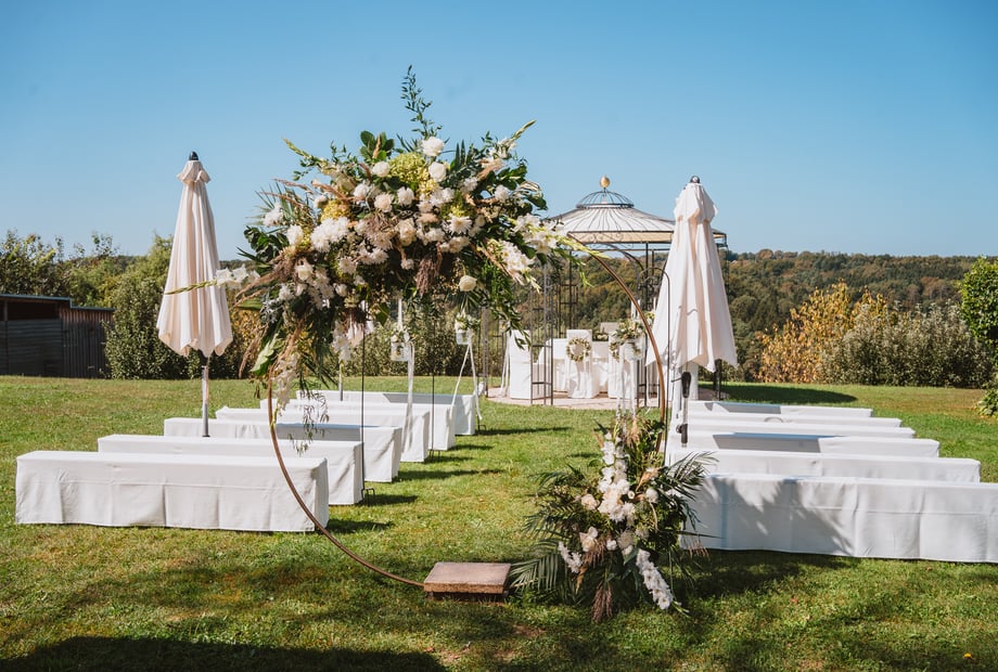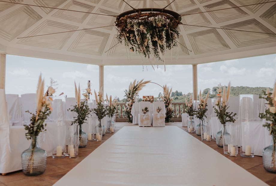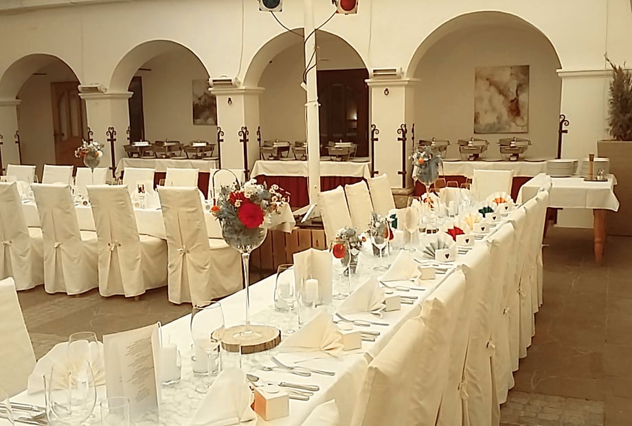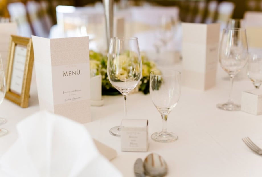Budgetiert zusätzlich für Catering (ca. €90 - €160 pro Person), Getränke, Dekoration, Musik und eventuelle Technik.