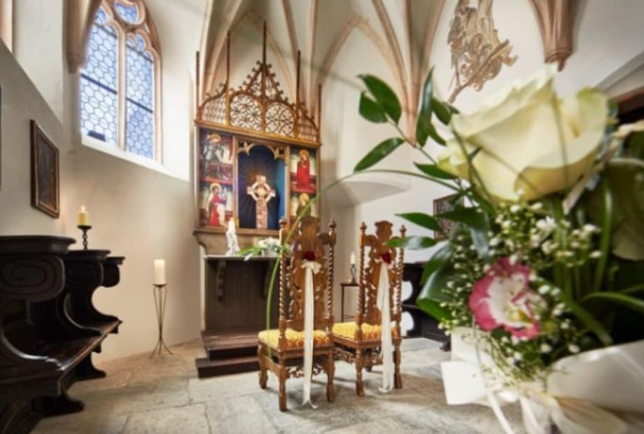 Die romantische Barockkapelle eignet sich ideal für eine Hochzeitsfeier mit einzigartiger Atmosphäre, und ist auch für nicht christliche Trauungen freigegeben.