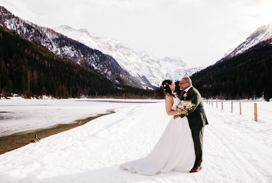 Eine Märchenhochzeit im Schnee! Die Weihnachtsmärkte und die verschneiten Alpen bieten eine einzigartige, magische Kulisse. Eine Indoor-Location mit Kaminfeuer sorgt für die perfekte Winterstimmung.