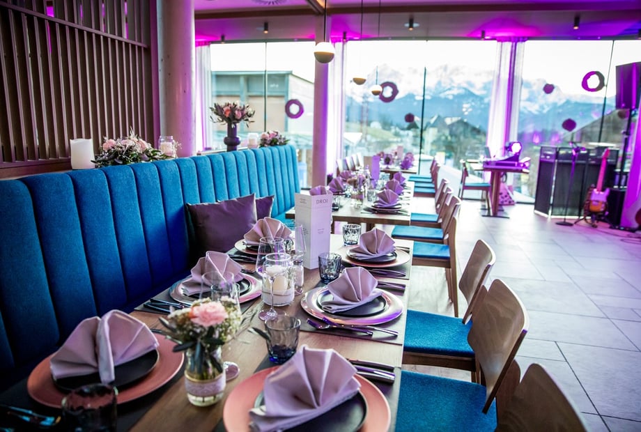 DROI in Werfenweng ist eine moderne Hochzeitslocation im Herzen der Salzburger Bergwelt, die alpines Panorama mit stilvollem Design und erstklassiger Kulinarik verbindet.