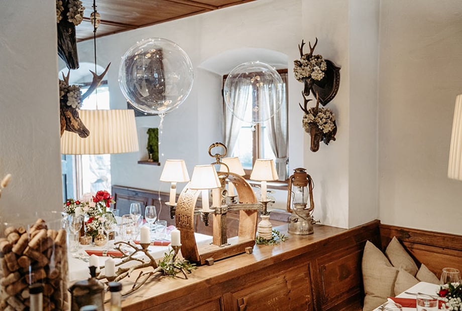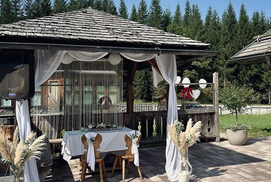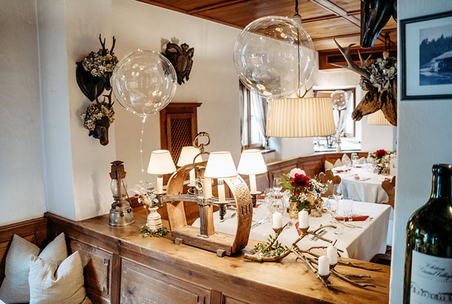 Gerne richten wir Ihre Hochzeit im besonderen Rahmen aus. Suchen Sie sich vorab Ihren Lieblingsplatz im Restaurant, im Stüberl oder während der Sommermonate auch im schattigen Gastgarten!