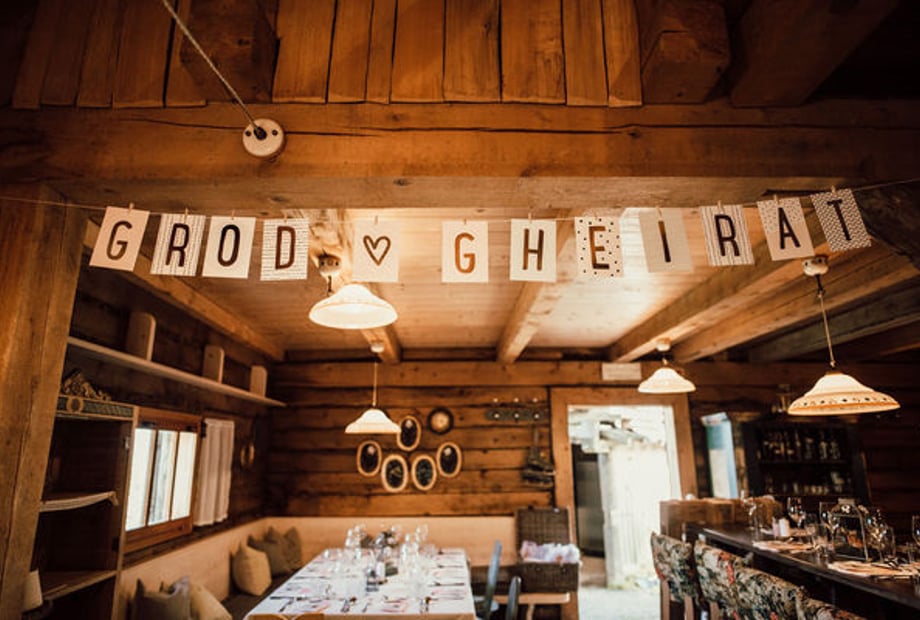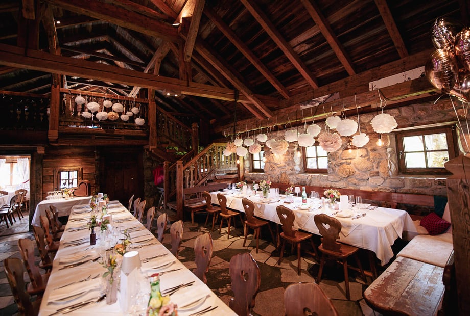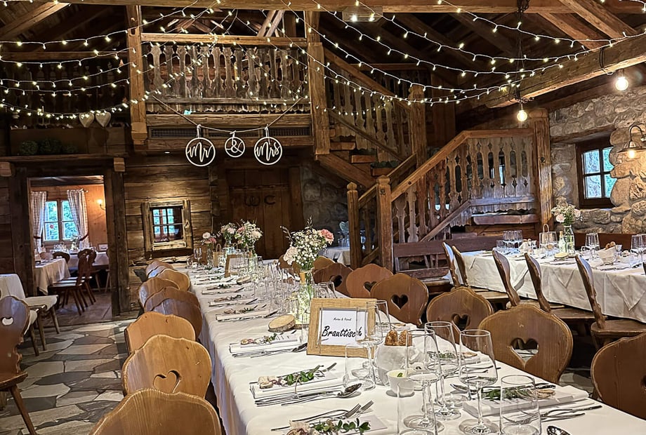 Exklusiv heiraten in den Bergen - TOM Almhütte die stylische Almhütte auf 1.165 m mit außergewöhnlichem Ambiente Für Paare, die Natur, Design und Klasse in einer einzigartigen Location vereinen wollen.