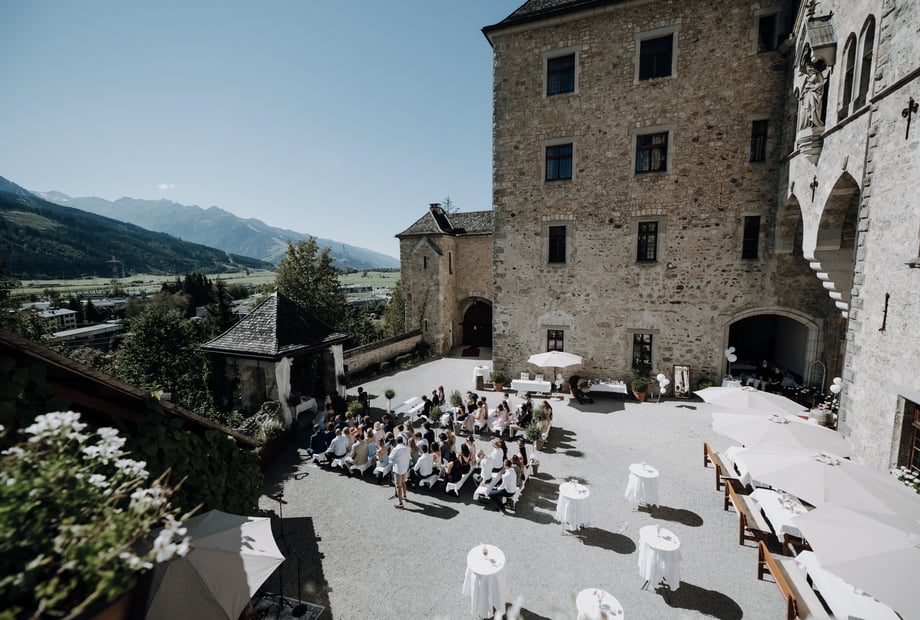 Schloss Mittersill bietet Ihnen verschiedene Räumlichkeiten mit romantischem Ambiente im Innen- und Außenbereich für bis zu 130 Personen für Ihre Feier zur Verfügung.