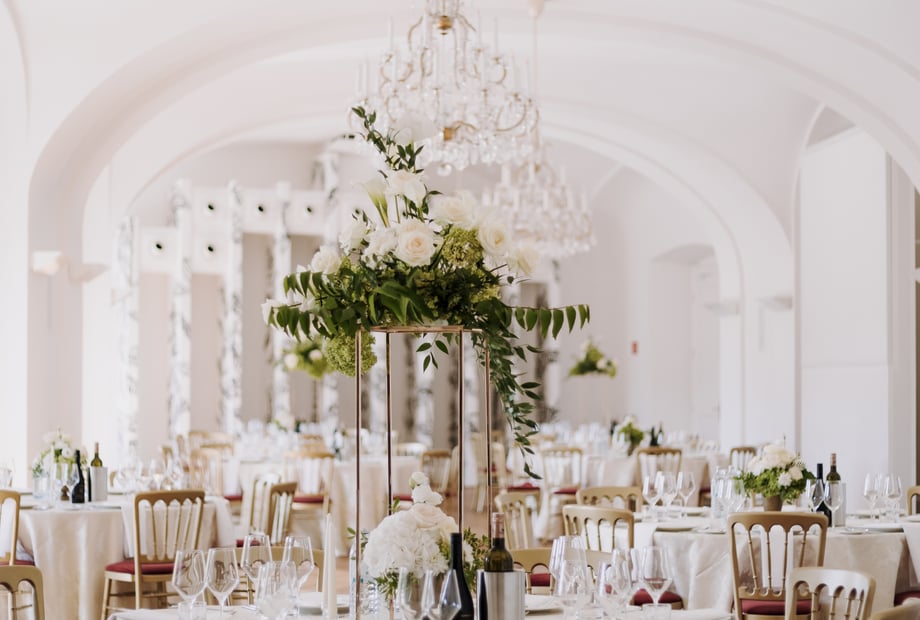 Kombinieren Sie Ihre Trauung mit einem wunderbaren Fest im Saal Maria Theresia (bis 150 Personen) oder in der Orangerie (mit bis zu 400 Personen).