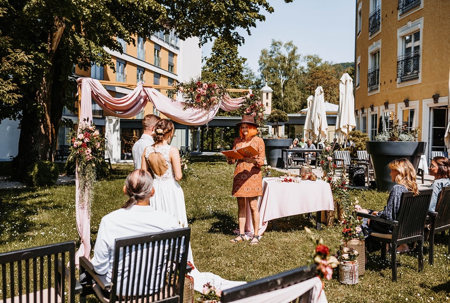 - Wunderschöner Hotelpark und Terrasse als perfekte Kulisse für Ihre Hochzeitsfotos