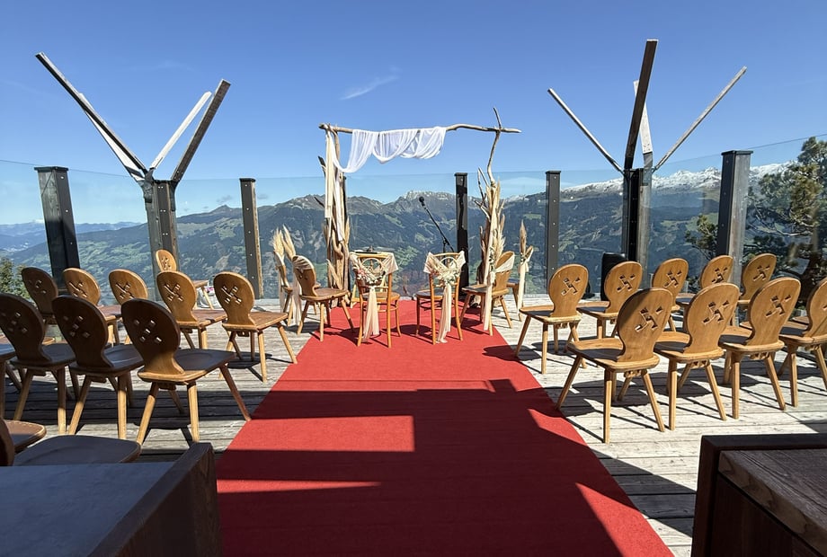 Die PlatzlAlm ist eine exklusive Hochzeitslocation auf 1.790 m Höhe – mitten in der beeindruckenden Zillertaler Bergwelt. Hier feiert ihr euren großen Tag „dem Himmel ein Stück näher“ – mit atemberaubender Aussicht, traditionellem Ambiente und einer ganz besonderen, romantischen Atmosphäre.