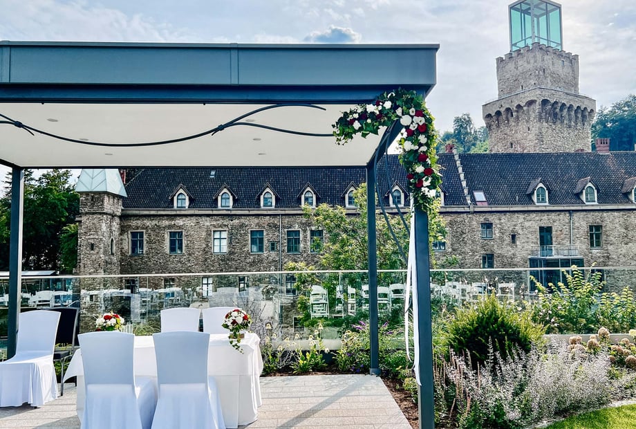 Ja – im romantischen Hochzeitsgarten könnt ihr eure Zeremonie unter freiem Himmel feiern, sei es standesamtlich oder frei. Die Lage bietet eine malerische Kulisse mit Blick auf die Altstadt von Waidhofen.