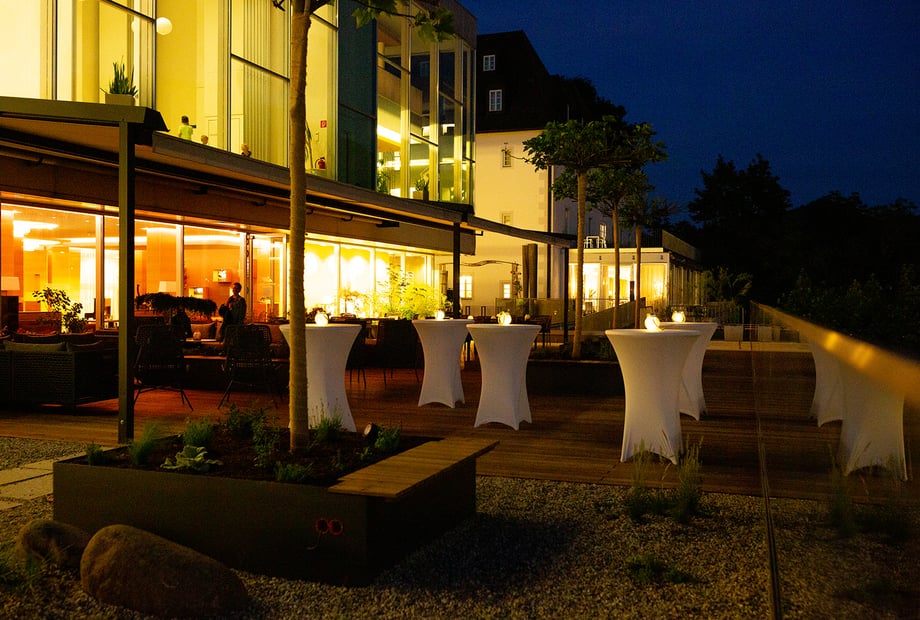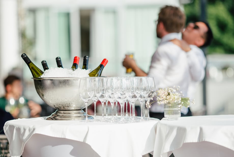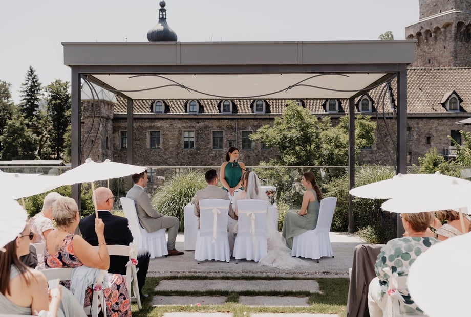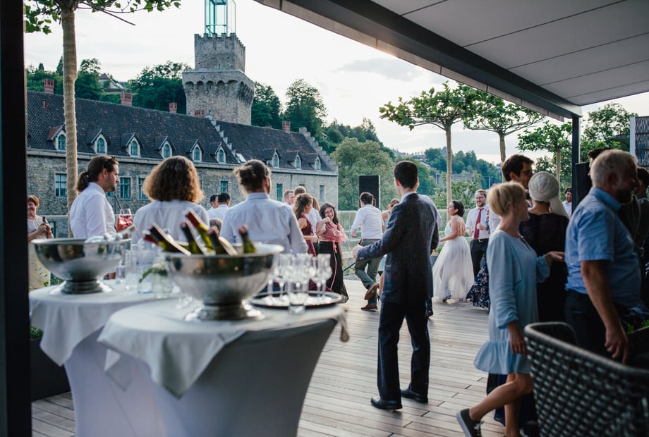Der Aperitif-Empfang auf der Schlossterrasse mit traumhaftem Ausblick ist ein besonderes Highlight.