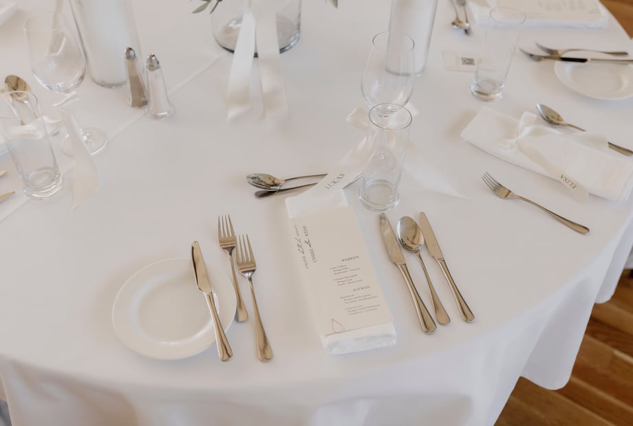 Unsere hauseigene Schlossküche verwöhnt euch mit einem individuellen Hochzeitsmenü oder Hochzeitsbuffet, abgestimmt auf eure Wünsche.