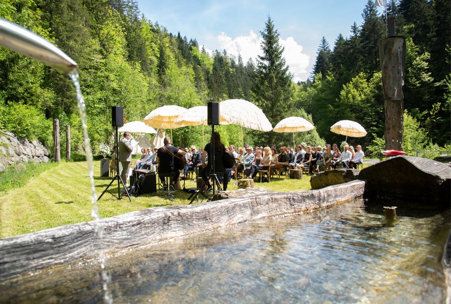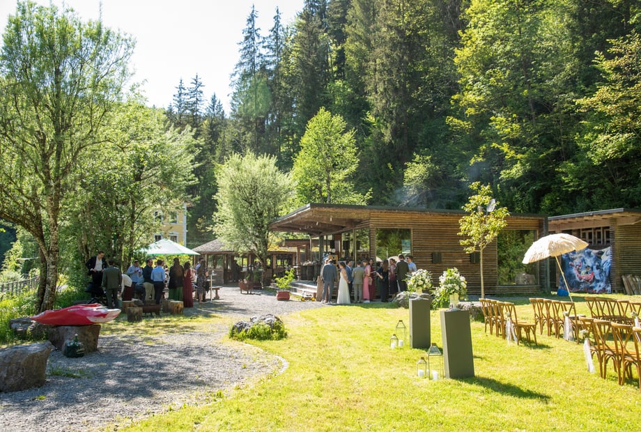 Mitten im wunderschönen Bregenzerwald, direkt an der Bregenzer Ach, liegt das H an der Ach – eine Hochzeitslocation, die Naturverbundenheit und entspannten Charme perfekt verbindet. Auf einem großzügigen, 8.000 m² großen Gelände erleben Sie hier eine einzigartige Atmosphäre, die Ihre Hochzeit zu einem unvergesslichen Erlebnis macht. Ob Sie eine freie Trauung unter freiem Himmel oder eine ausgelassene Feier ohne Sperrstunde planen – hier können Sie Ihre Liebe ganz frei und individuell feiern.