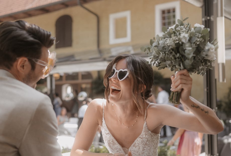 Ja – egal, ob die Sonne lacht oder sich ein paar Wolken zeigen. Dank unserer wetterunabhängigen Trau-Location in der Remise könnt ihr euch ganz entspannt zurücklehnen.