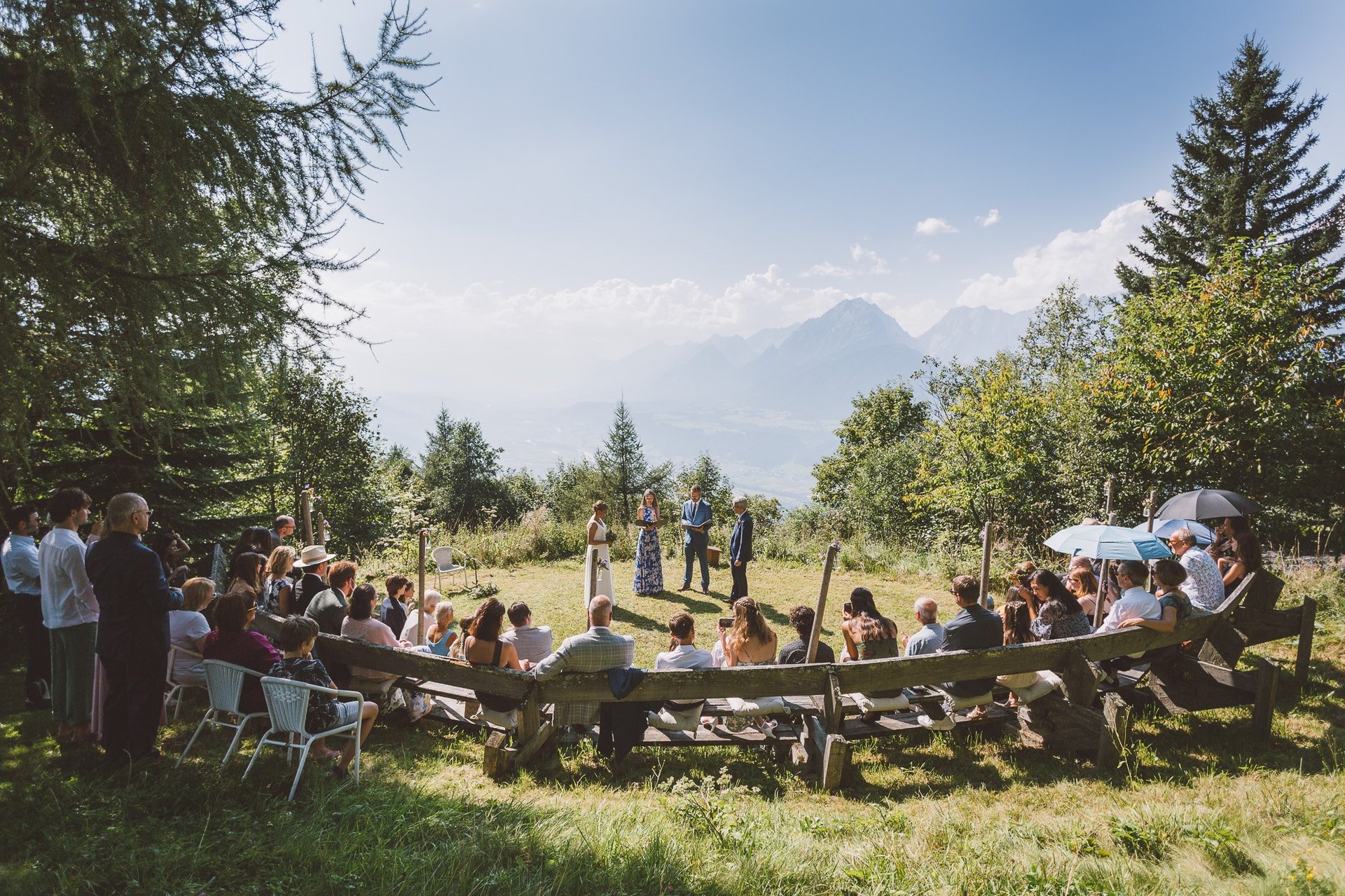 Ja — sowohl freie Trauungen im Freien mit Bergpanorama als auch standesamtliche Zeremonien sind möglich (z. B. Montag–Freitag)