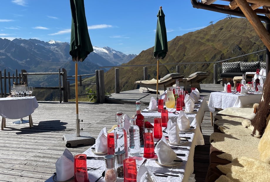 Stellen Sie sich vor, Sie feiern Ihre Hochzeit auf 2.250 Metern Höhe, umgeben von der beeindruckenden Bergwelt der Zillertaler Alpen. Die Schneekarhütte, auf einem Hochplateau gelegen, bietet genau dieses einmalige Erlebnis. Mit ihrer markanten, pyramidenförmigen Architektur fügt sich die Location perfekt in die alpine Landschaft ein und schafft so eine atemberaubende Kulisse für Ihren großen Tag.
