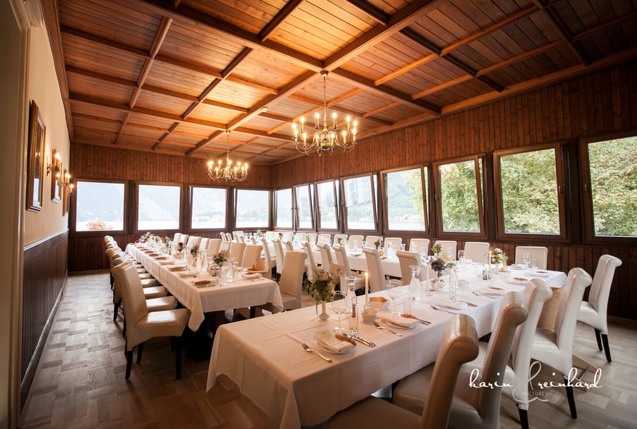 Das hauseigene Restaurant verwöhnt Sie und Ihre Gäste mit einer ausgezeichneten Küche, die besonderen Wert auf saisonale und regionale Produkte legt. Freuen Sie sich auf heimische Fischspezialitäten aus dem Traunsee und traditionelle österreichische Gerichte, die auf höchstem Niveau zubereitet werden. Die Spitzvilla ist mehr als nur eine Eventlocation – sie macht Ihre Hochzeit zu einem unvergesslichen Erlebnis.