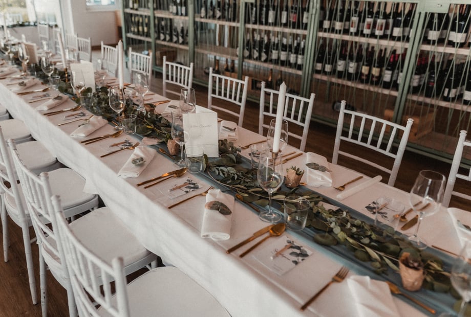 Für das Hochzeitsdinner und die anschließende Feier bietet der elegante Festsaal Platz für bis zu 150 Personen. Alternativ können Sie auch den weitläufigen Gastgarten unter freiem Himmel nutzen. Besonders beliebt ist die Outdoor-Tanzfläche mit eigener Strandbar – perfekt für eine ausgelassene Party ohne Sperrstunde oder Lautstärkenbeschränkung.