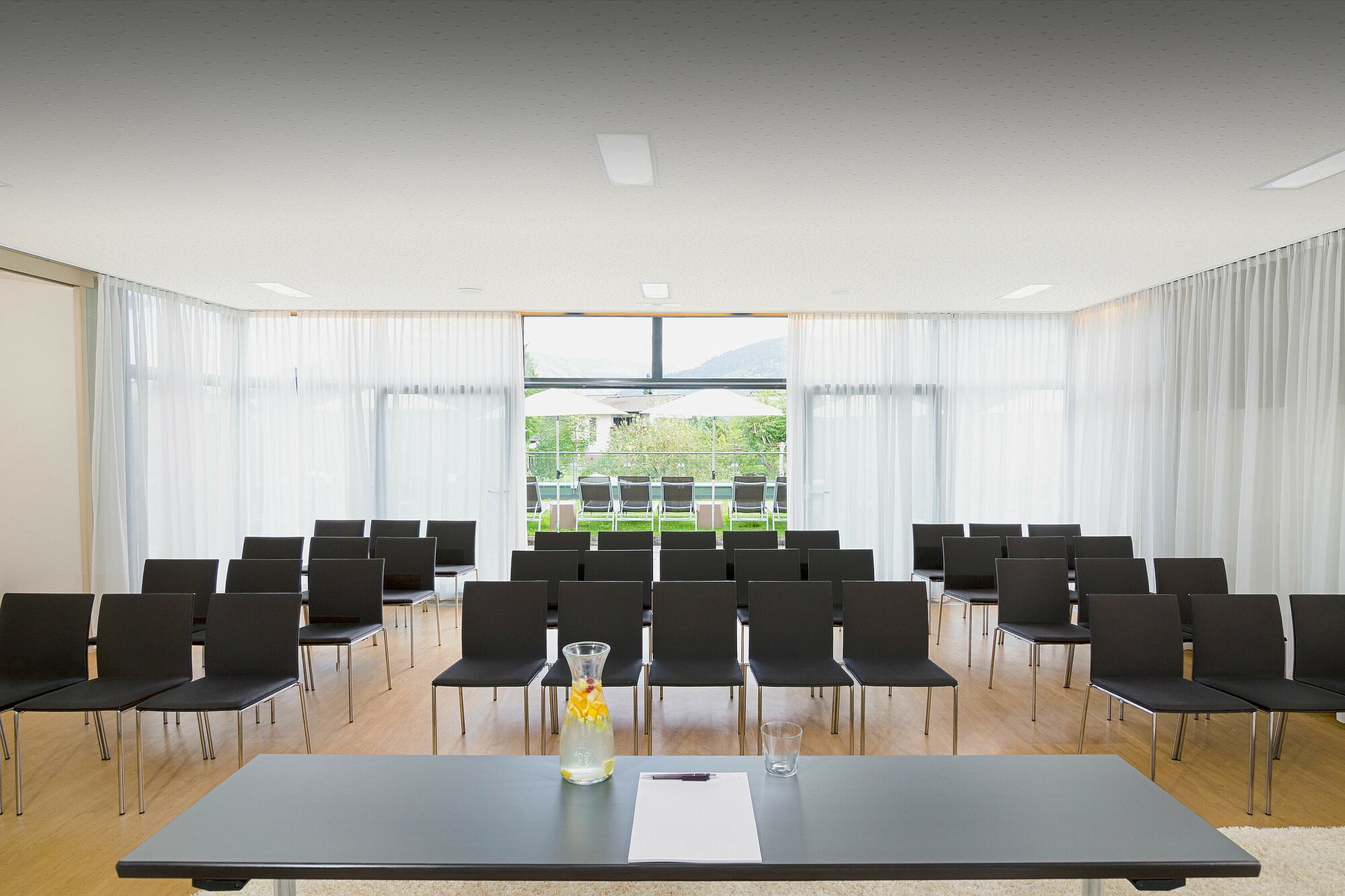 - Indoor im Seminarhaus: Sollte das Wetter nicht mitspielen, steht ein heller, freundlicher Raum mit Bergblick bereit – eine charmante Alternative.