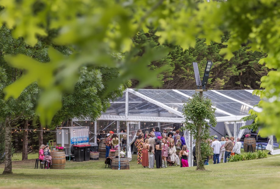 Our Winery is all about excellent wine, views, relaxation, friendship and naturally, yummy food to go with it. The site offers a casual and friendly atmosphere. The Vineyard Marquee is ideal for groups, offering room to move around and some privacy.