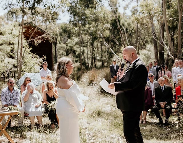 - The Barn: Celebrate your reception in this warm, timber-clad space featuring a cozy wood fire for cooler months. Large bi-fold doors open onto a spacious undercover deck, creating a seamless indoor-outdoor flow. The Barn comfortably hosts up to 140 guests for cocktail-style receptions, all while offering spectacular countryside views.