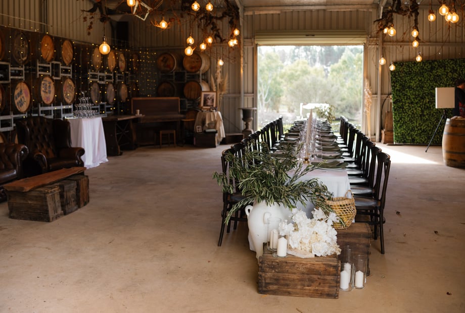 Edgecombe Winery embraces a D.I.Y. wedding style, giving you the freedom to design your day exactly how you want it. Whether you’re planning an intimate ceremony or a lively celebration, the venue adapts to your vision. Choose from casual cocktail receptions, elegant sit-down dinners under a marquee, or alfresco dining in the vine-draped outdoor area—perfect for a romantic long-table lunch or dinner.
