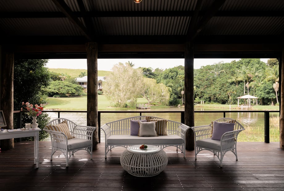 Surrounded by rolling green hills, a tranquil lake, and vibrant gardens, the property is a visual masterpiece. Towering rainforest trees and curated plantings offer not only privacy but also rich, textured scenery that changes beautifully with the light — making for stunning photos at any time of day.