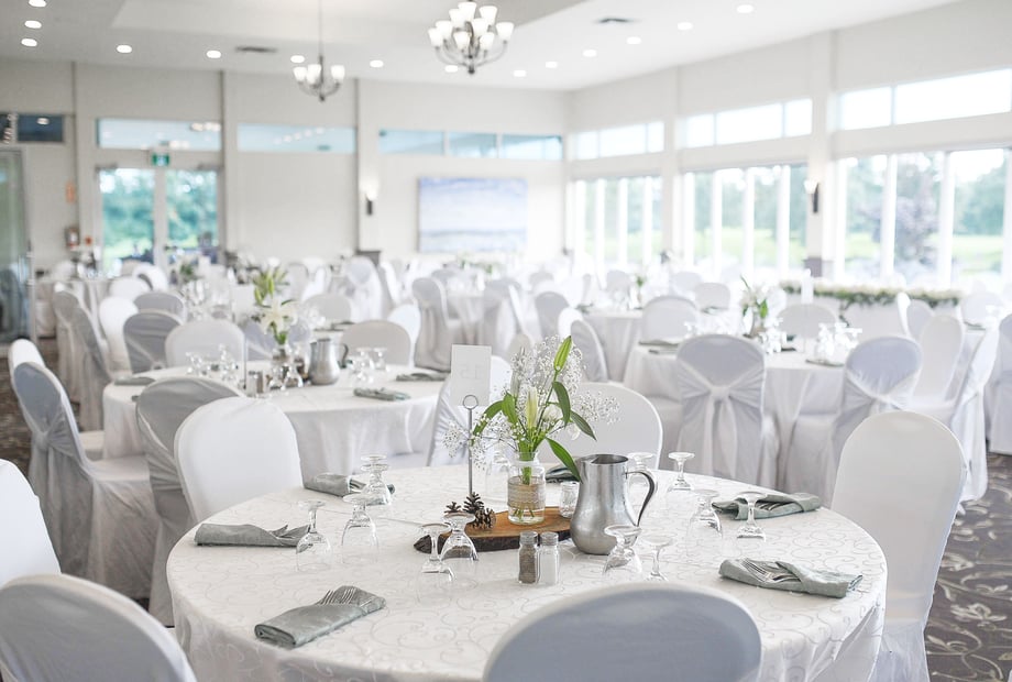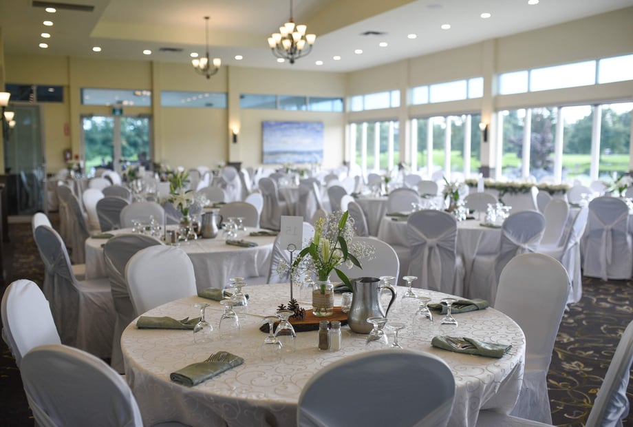 For the milestone ceremony, everybody may gather by our outdoor pergola as the happy couple prepares to say “I do”, swap rings, and declare their love for one another. Here, in the open air, an officiant can declare the couple as newlyweds while everyone marks the occasion with photos and videos against a natural backdrop. Inside the ballroom, the reception revelries can take place as everyone comes together to share a delectable dining experience. Large windows offer views of the course and surrounding grounds, letting in ample natural light in the daytime. As evening sets in, chandeliers and spotlighting add a warm and inviting ambience. The decor is defined by plush patterned carpeting, a muted colour scheme, and comfortable furnishings. Overall, a maximum of approximately 60 to 160 guests can be accommodated at Carlisle Golf Club. This ensures that couples can invite their nearest and dearest for a whirlwind celebration of love and commitment.