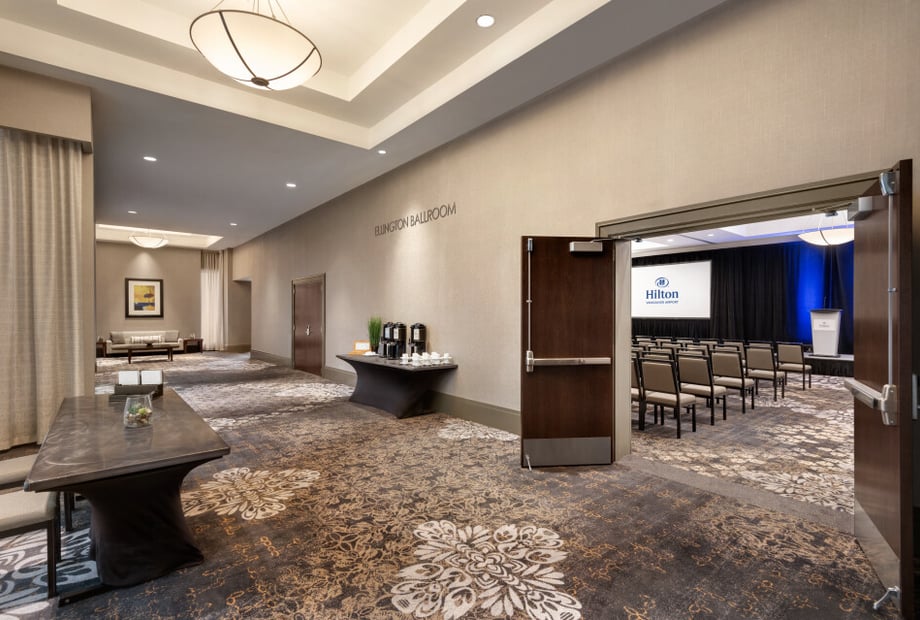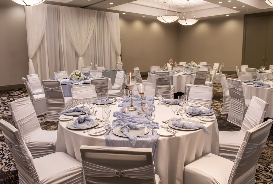 The Ellington Ballroom features a sleek, contemporary design with clean lines and a neutral color palette that creates a sophisticated and timeless ambiance. Its spacious and flexible layout, complemented by modern adjustable lighting and elegant finishes, provides the perfect blank canvas to customize your wedding décor—whether you envision a classic, modern, or themed celebration. The refined atmosphere ensures a stylish and welcoming setting for you and your guests.
