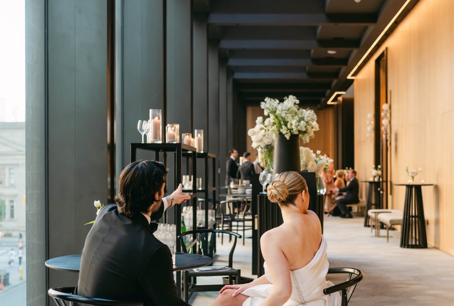 The vibrant atmosphere of the Yorkville neighbourhood sets the perfect backdrop for your wedding festivities, with trendy boutique offerings and the luxurious Stillwater Spa for your guests to enjoy. Indoor Spaces for Every Celebration Whether you're planning a ceremony, reception, engagement party, bridal shower, or rehearsal dinner, Park Hyatt Toronto offers a variety of indoor spaces to accommodate small to medium-sized celebrations. The Roof Salon boasts floor-to-ceiling windows and skyline views, while the Mezzanine features a roaring fireplace and private bar.