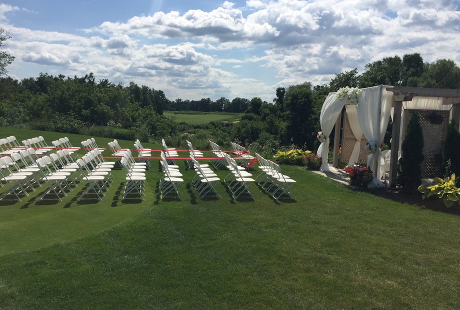 Royal Ontario Golf Club - A Dream Wedding Venue Imagine exchanging vows in a picturesque outdoor gazebo, surrounded by lush greenery and a serene water feature. At Royal Ontario Golf Club, this dream can become a reality. Whether you prefer an outdoor ceremony or an indoor celebration, this charming venue offers the perfect backdrop for your special day. The Main Banquet Room exudes elegance and sophistication, making it an ideal setting for your reception. With ample natural light streaming in through large windows and a spacious layout, this room can accommodate up to 200 guests. A designated head table allows the newlyweds to be front and center, while the rest of the party can enjoy a delicious meal and dance the night away on the dance floor. Capture stunning photos around the grounds of the golf club, from the manicured fairways to the white-pillared gazebo. Every corner of this venue offers a picture-perfect setting for your wedding day, ensuring that your memories will last a lifetime. At Royal Ontario Golf Club, your love story can unfold in a truly magical setting. Say "I do" surrounded by beauty and elegance, and let us help you create the wedding of your dreams.