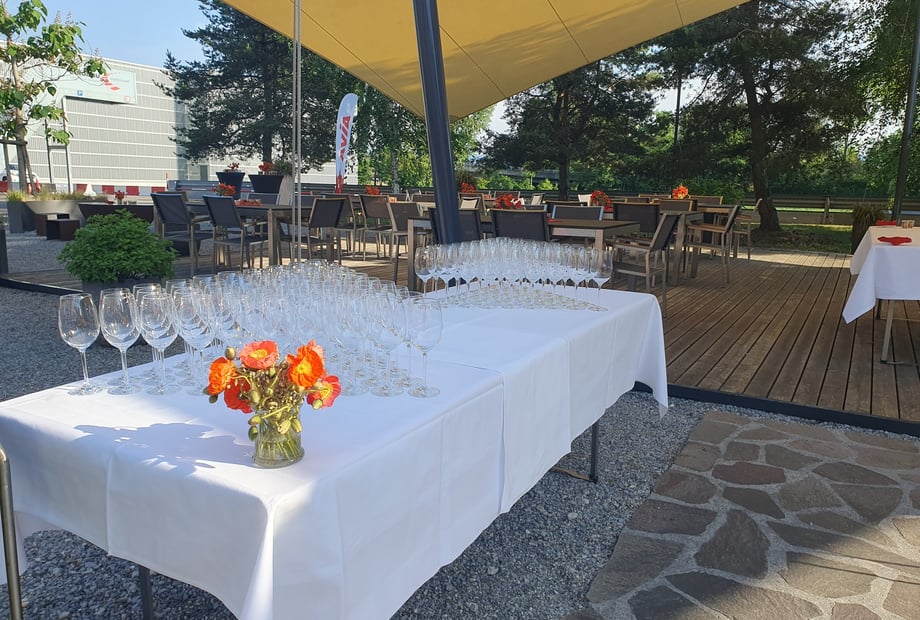 Für das leibliche Wohl sorgt ein professionelles Catering-Team, das mit regionalen Partnern zusammenarbeitet. Frische, saisonale Zutaten stehen im Mittelpunkt. Ihr könnt zwischen gutbürgerlichen und exklusiven Menüs, Flying Dinners oder Apéro Riche wählen. Das hauseigene Gastronomie-Team übernimmt den Service vor Ort. Falls ihr eigene Cateringpartner bevorzugt, ist das nach Absprache ebenfalls möglich. Die Location verfügt über eine voll ausgestattete Catering-Küche.
