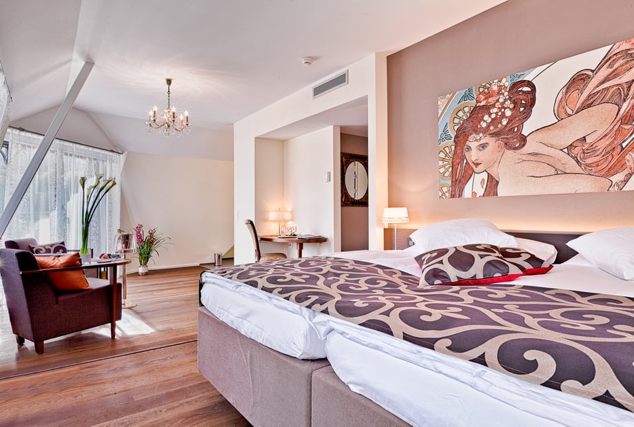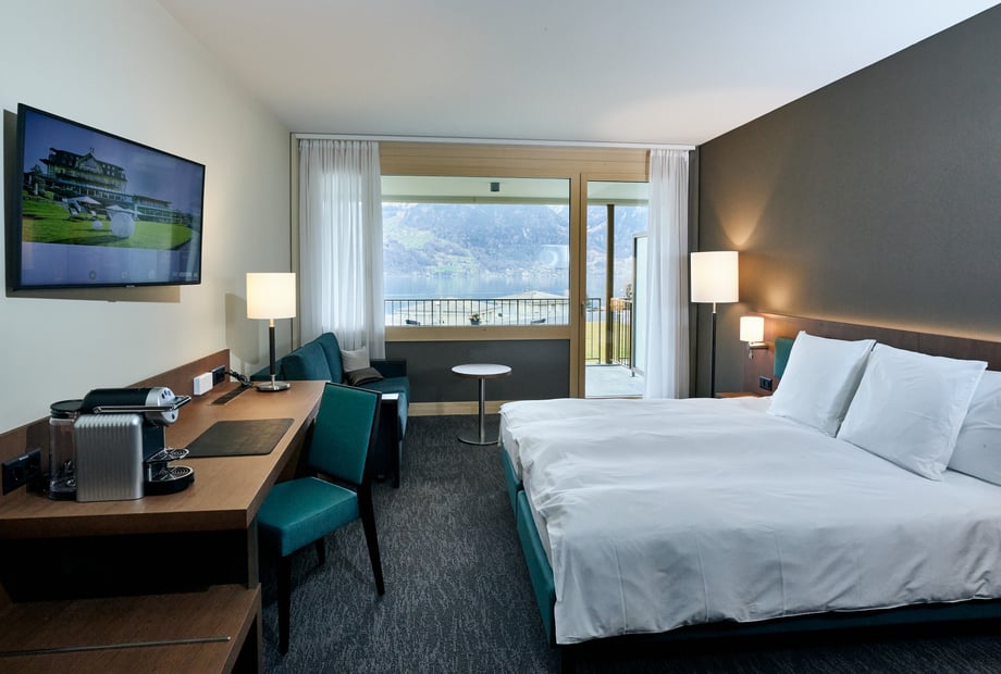 Das Hotel verfügt über 56 stilvolle Zimmer mit See- oder Bergblick – ideal für Hochzeitsgäste.