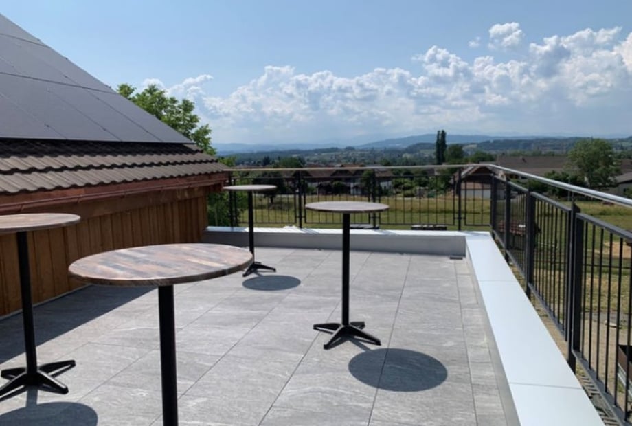 - Terrassen: Zwei großzügige Terrassen mit insgesamt 180 m² laden zum entspannten Verweilen im Freien ein – perfekt für Sektempfang oder gemütliche Gespräche mit Blick ins Grüne.