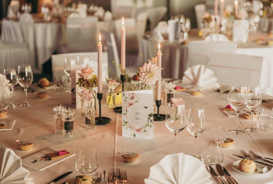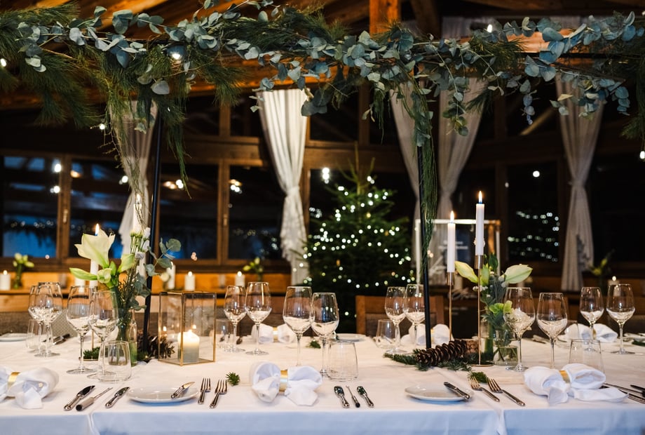 Tische, Tischwäsche, Servietten und Geschirr sind in der Raummiete enthalten. Gerne gibt das Team auch Kontakte zu passenden Dienstleistern wie Floristen weiter.