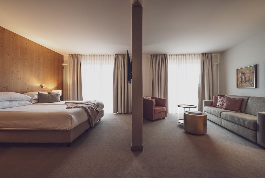 Das 4-Sterne-Superior-Hotel Waldhuus bietet nicht nur eine erstklassige Hochzeitslocation, sondern auch komfortable Übernachtungsmöglichkeiten in 108 modernen Zimmern und Suiten für Sie und Ihre Gäste. Entspannen Sie vor oder nach der Feier im großzügigen Wellnessbereich mit Indoor-Pool und verschiedenen Saunen. Die zentrale und zugleich idyllische Lage macht das Hotel Waldhuus zur perfekten Wahl für Paare, die ihre Hochzeit in Davos zu einem unvergesslichen Erlebnis machen möchten.