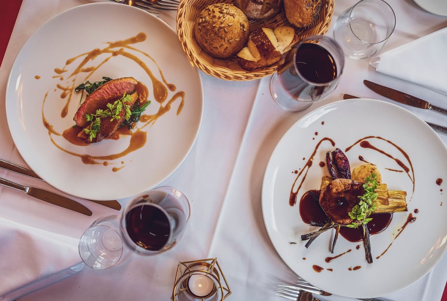 Es gibt verschiedene Menü-Optionen (z. B. 3- bis 5-Gang-Menüs oder Buffetformen), und eine Mischung aus beidem ist ebenfalls möglich