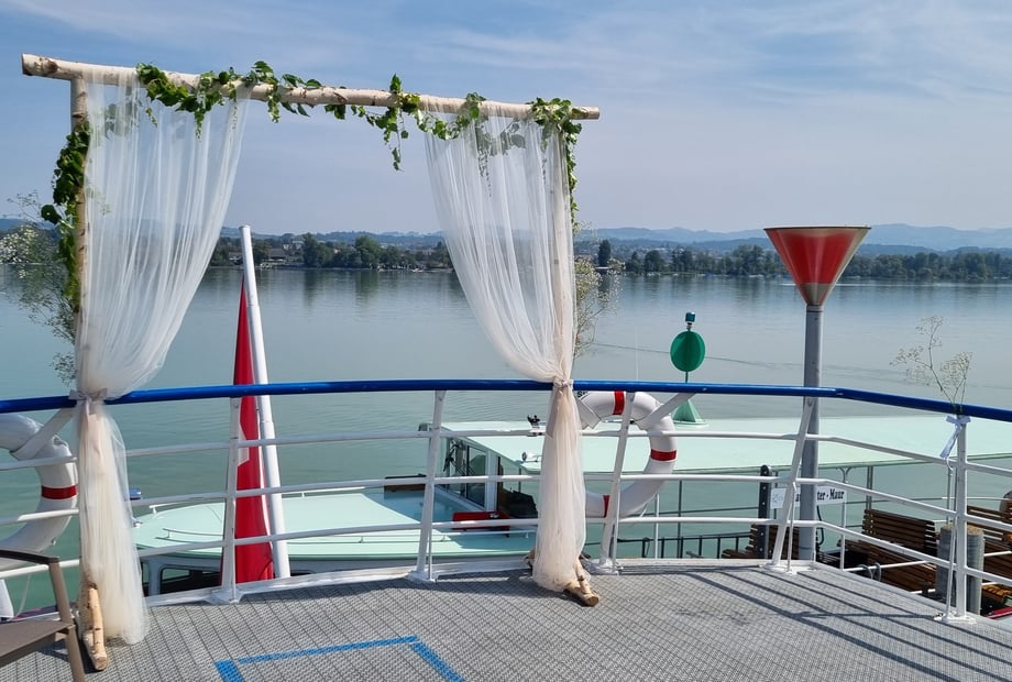 Besonders praktisch: Die schwimmende Location lässt sich wunderbar mit einer zivilen Trauung im nahegelegenen Schloss Greifensee kombinieren. Anschließend genießen Sie eine entspannte Apérofahrt auf dem See. Dank verschiedener Anlegestellen in Maur, Greifensee und Uster können Sie Ihre Route flexibel gestalten – ganz nach Ihren Vorstellungen.