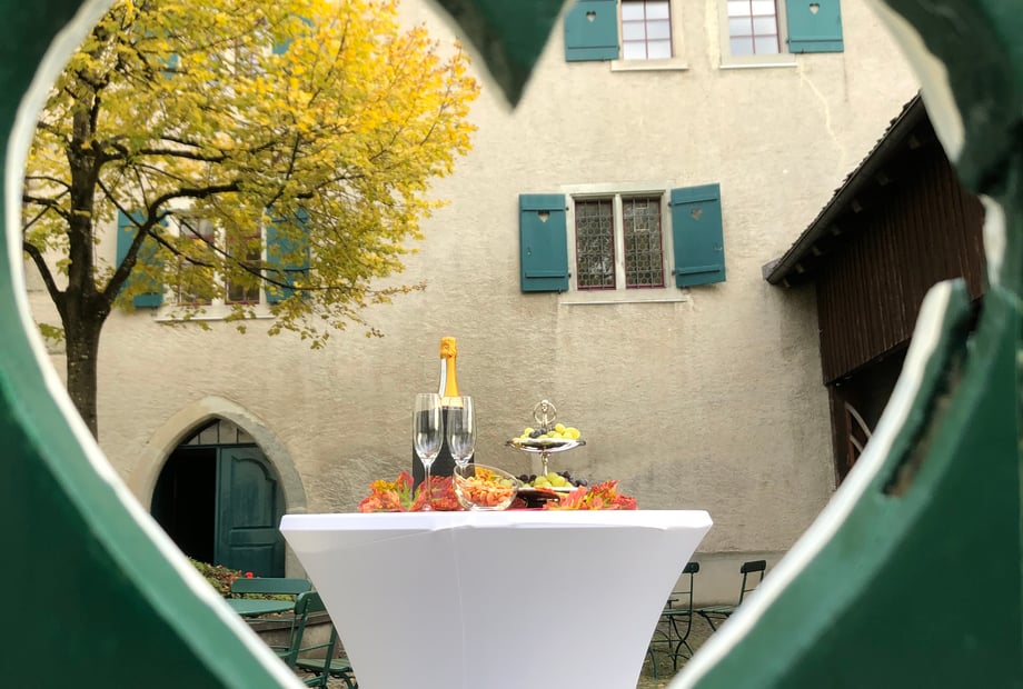 Die idyllische Lage mitten im Stedtli Grüningen schafft eine romantische Kulisse für Ihren großen Tag. Die schlichte Eleganz der Innenräume kombiniert mit moderner technischer Ausstattung sorgt für den perfekten Mix aus historischem Flair und zeitgemässem Komfort.