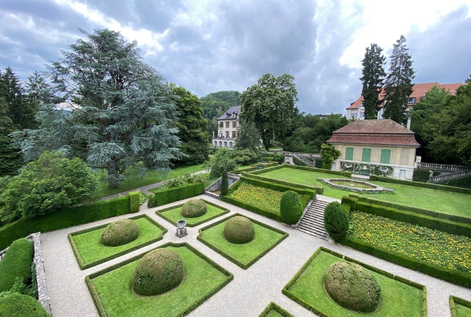 Der weitläufige Park der Villa Boveri ist ein echtes Highlight: Französische Gärten, Teiche und Brunnen schaffen eine ruhige, idyllische Atmosphäre. Nutzen Sie diesen traumhaften Ort für Ihr Paarshooting und unvergessliche Hochzeitsfotos. So können Sie alle wichtigen Programmpunkte – vom First Look über die Zeremonie bis zum Apéro – entspannt an einem Ort genießen, ohne Zeit für Ortswechsel zu verlieren.