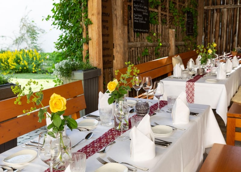 Weingut Vollmayer in der Nähe von Stuttgart: Hier schlagt ihr gleich zwei Fliegen mit einer Klappe, denn ihr habt Weingut und romantische Scheune in einem. Mit bis zu 120 Gästen könnt ihr hier einen atemberaubenden Blick auf die Landschaft genießen.