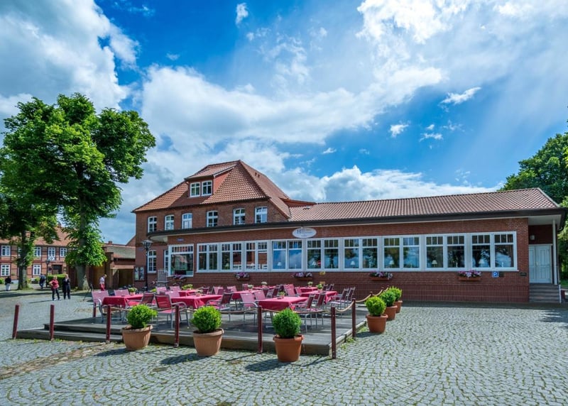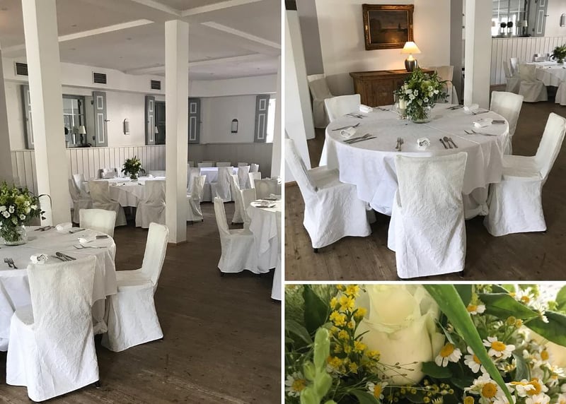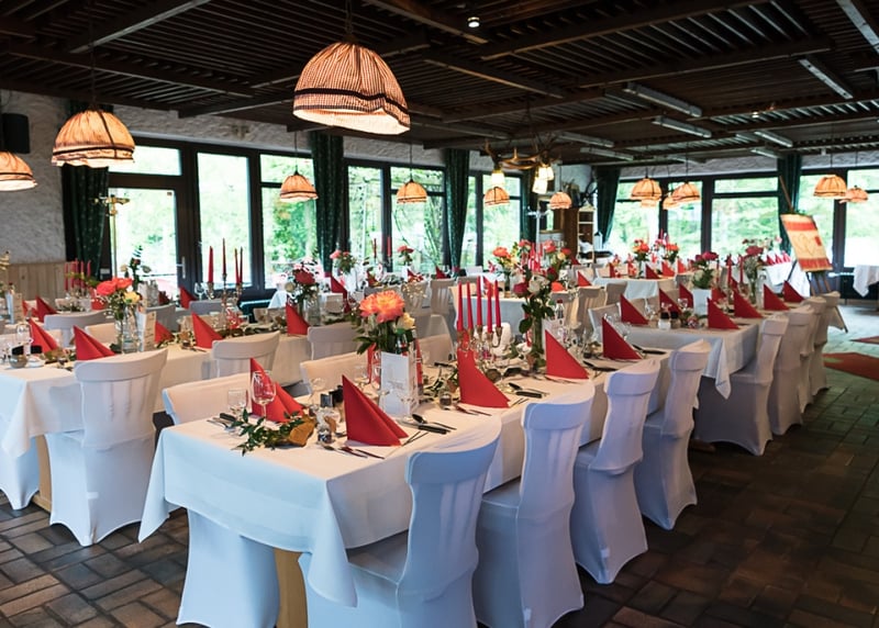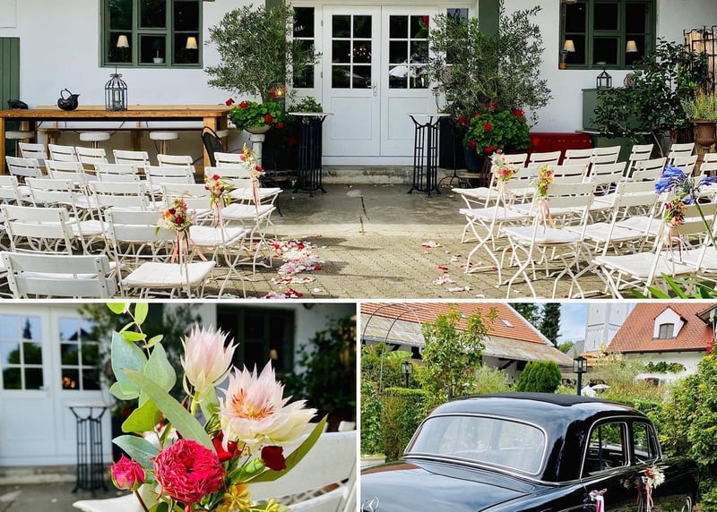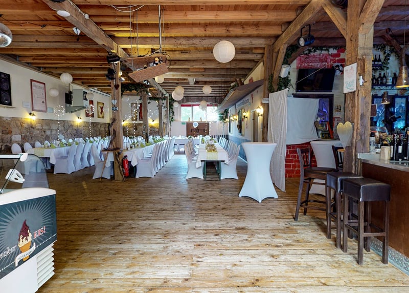 Kuhstall in der Nähe von Hamburg: Der umgebaute Kuhstall verfügt über ein geräumiges Interieur und bietet in gemütlicher Atmosphäre Platz für bis zu 120 Gäste. Auch hier gibt es einen schönen Garten für Zeremonien und Empfänge im Freien.