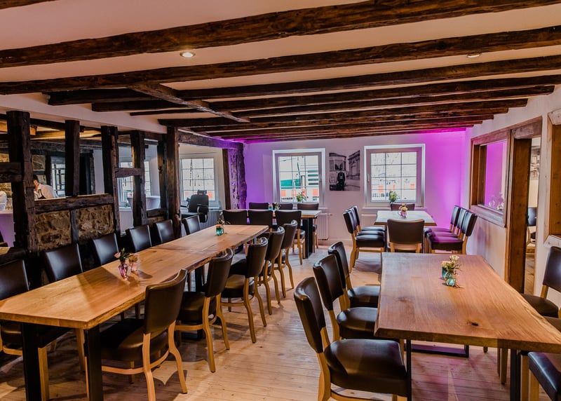 • Scheunencafé in der Nähe von Frankfurt: Die rustikale Scheune mit freiliegenden Holzbalken bietet Platz für bis zu 150 Gäste. Toll für den Sommer: Es gibt einen schönen Außenbereich für Zeremonien und Empfänge.