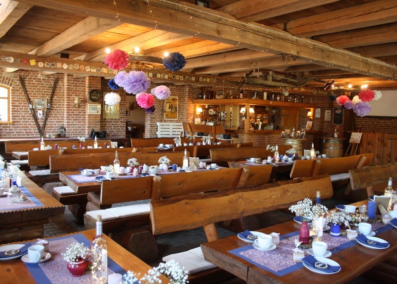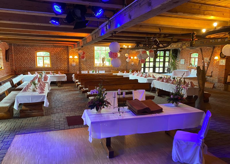 Kuhstall in der Nähe von Hamburg: Der umgebaute Kuhstall verfügt über ein geräumiges Interieur und bietet in gemütlicher Atmosphäre Platz für bis zu 120 Gäste. Auch hier gibt es einen schönen Garten für Zeremonien und Empfänge im Freien.