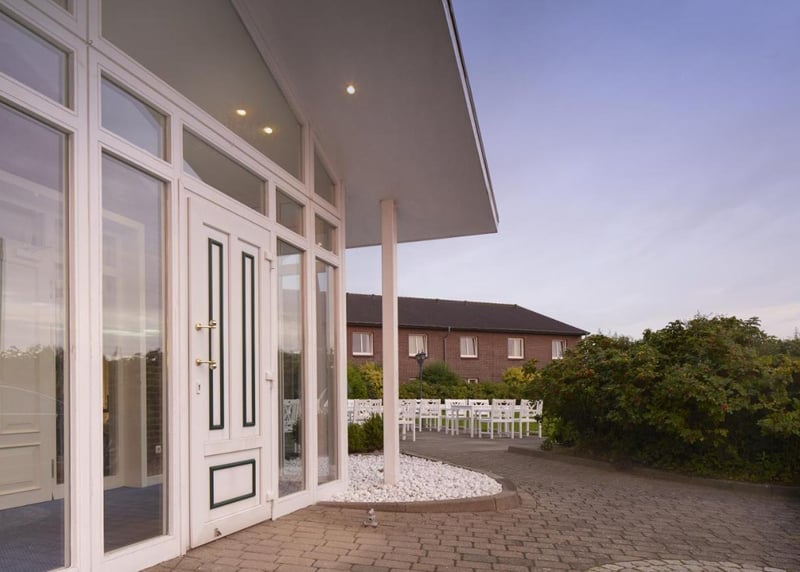 Kuhstall in der Nähe von Hamburg: Der umgebaute Kuhstall verfügt über ein geräumiges Interieur und bietet in gemütlicher Atmosphäre Platz für bis zu 120 Gäste. Auch hier gibt es einen schönen Garten für Zeremonien und Empfänge im Freien.