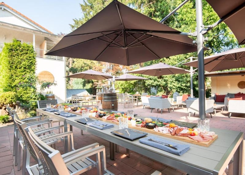 Weingut Vollmayer in der Nähe von Stuttgart: Hier schlagt ihr gleich zwei Fliegen mit einer Klappe, denn ihr habt Weingut und romantische Scheune in einem. Mit bis zu 120 Gästen könnt ihr hier einen atemberaubenden Blick auf die Landschaft genießen.