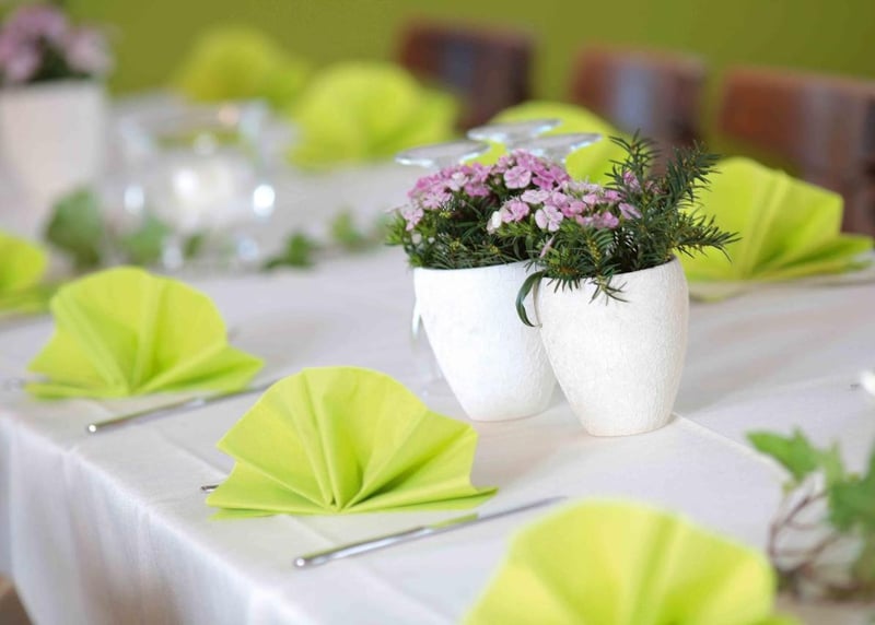F�r das Catering eignen sich Bio-Produkte und saisonale Men�s perfekt � so unterst�tzt ihr lokale Bauern und minimiert den �kologischen Fu�abdruck. Setzt auf recycelbare oder wiederverwendbare Dekorationen wie Glasvasen, Stoffservietten und nat�rliche Materialien. Die sehen nicht nur gut aus, sondern freuen auch die Umwelt.