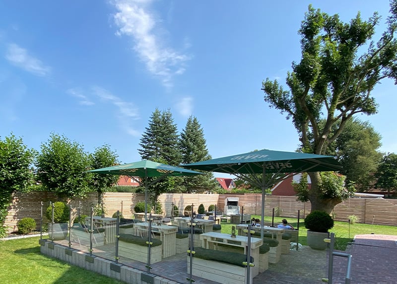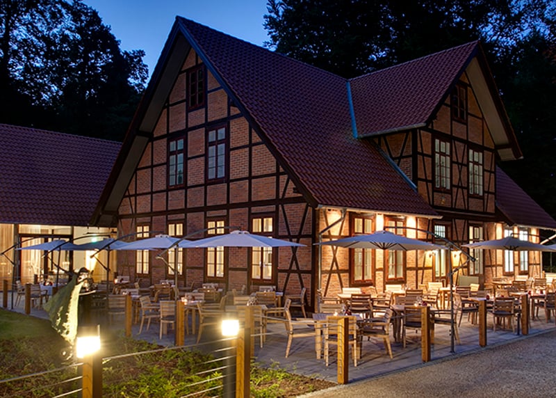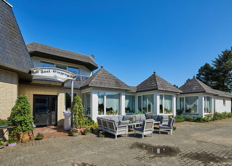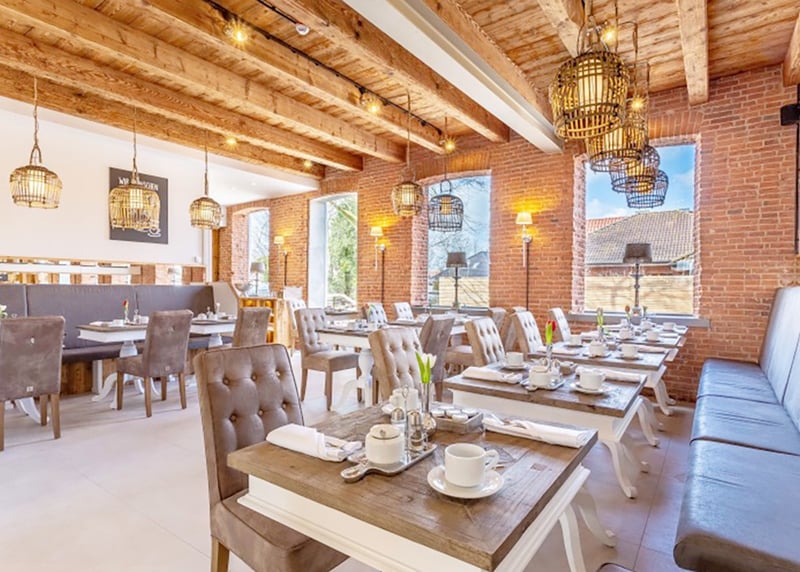 Kuhstall in der Nähe von Hamburg: Der umgebaute Kuhstall verfügt über ein geräumiges Interieur und bietet in gemütlicher Atmosphäre Platz für bis zu 120 Gäste. Auch hier gibt es einen schönen Garten für Zeremonien und Empfänge im Freien.