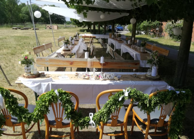Kuhstall in der Nähe von Hamburg: Der umgebaute Kuhstall verfügt über ein geräumiges Interieur und bietet in gemütlicher Atmosphäre Platz für bis zu 120 Gäste. Auch hier gibt es einen schönen Garten für Zeremonien und Empfänge im Freien.