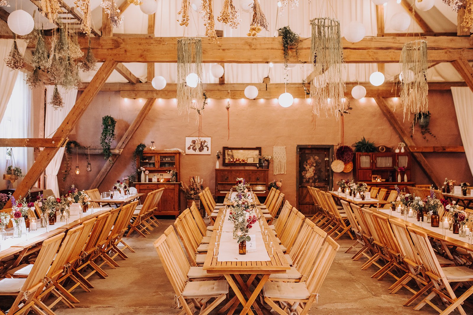 Hier trifft mittelalterliche Architektur auf moderne, künstlerische Akzente. Die historischen Mauern schaffen eine warme, familiäre Atmosphäre, die besonders für intime und persönliche Feiern geeignet ist. Der weitläufige, wildromantische Schlossgarten mit altem Baumbestand bietet eine ruhige und wunderschöne Kulisse für Ihre Trauung und die anschließenden Feierlichkeiten.