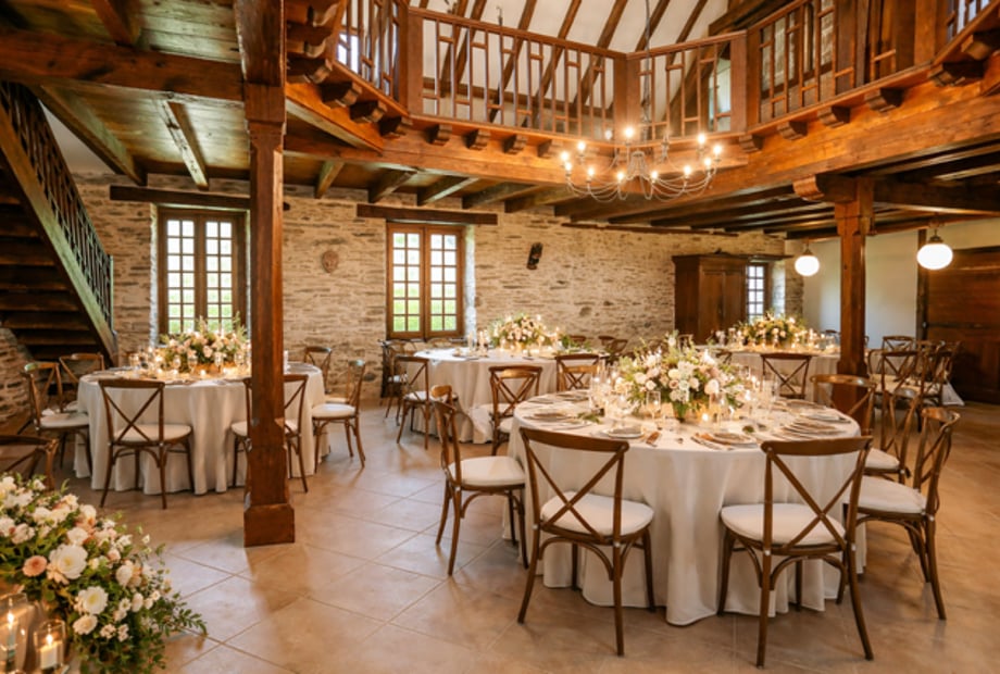 Every corner of Château d’Eyparsac blends historic authenticity with modern comfort: stone floors, magnificent oak beams, the “upside-down boat” room with cinema, bar and games, and separate ladies’ and gentlemen’s towers. Indoor and outdoor spaces allow you to host your reception exactly how you envision it.
