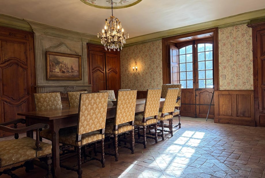 This stunning chateau offers green lush landscape and cream stones and with contrasting dark wood is an amazing backdrop for your Stay, French wedding or Event.