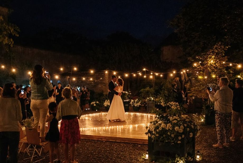 A couple chose to install a vintage audio booth in the château gardens, inviting their loved ones to record messages throughout the day. Laughter, anecdotes, touching vows, and spontaneous declarations... All these moments were recorded on a personalized vinyl record. A few weeks later, the bride and groom received this unique record: the authentic soundtrack of their day, to listen to again and relive the emotion, again and again.